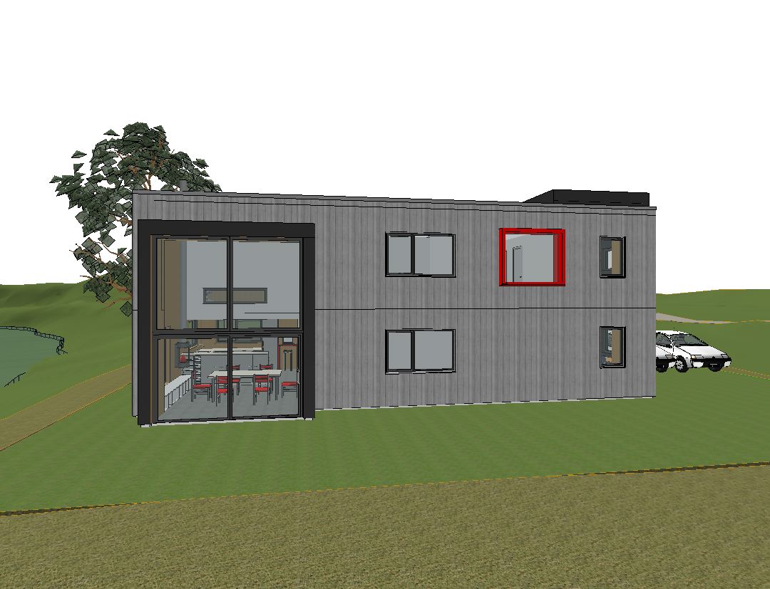 Det vert soverom inni den svarte boksen. Ingebjørg nede og Alfred og Magni oppe. Iver får rom mot elva og treet i motsett hjørne.